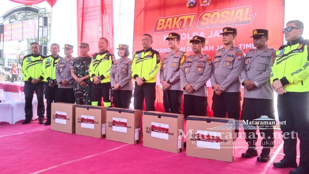 Selain itu Kapolda Jatim juga menyerahkan bantuan peralatan kantor untuk Polsek yang ada di jajaran Polres Tulungagung dan Makoramil Kauman.