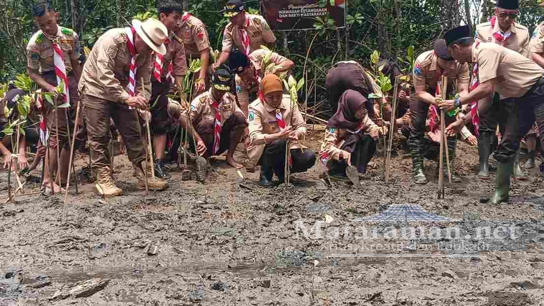 Trenggalek, Mataraman.net– Gubernur Jawa Timur Khofifah Indar Parawansa melakukan penanaman Pohon Manggrove di Kawasan Pantai Cengkrong Trenggalek. Acara tersebut merupakan rangkaian kegiatan ‘Peningkatan Wawasan Kebangsaan dan Bakti Masyarakat’ dari Kwartir Daerah Gerakan Pramuka Jawa Timur, KAmis (4/12/2025).