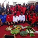 Tulungagung, Mataraman.net – Pasangan Bacabup dan Bacawabup Maryoto Birowo dan dan Didik Girnoto Yekti mendaftar ke KPU Tulungagung di hari pertama. Ratusan simpatisan mengiringi pendaftaran pasangan yang memiliki akronim Mardinoto tersebut. Mereka menggelar selamatan metri di depan pintu gerbang KPU sebelum mendaftar.