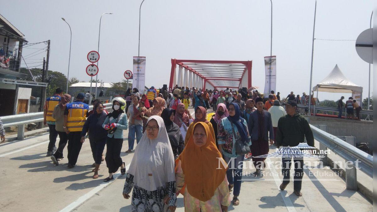 Pantauan Mataraman.net, usai peresmian secara simbolis, ratusan warga berbondong-bondong menyaksikan jembatan bersama sanak famili. Selain ingin melihat jembatan tersebut juga menyerbu makan gratis di sekitar Jembatan Jongbiru. (mad)
