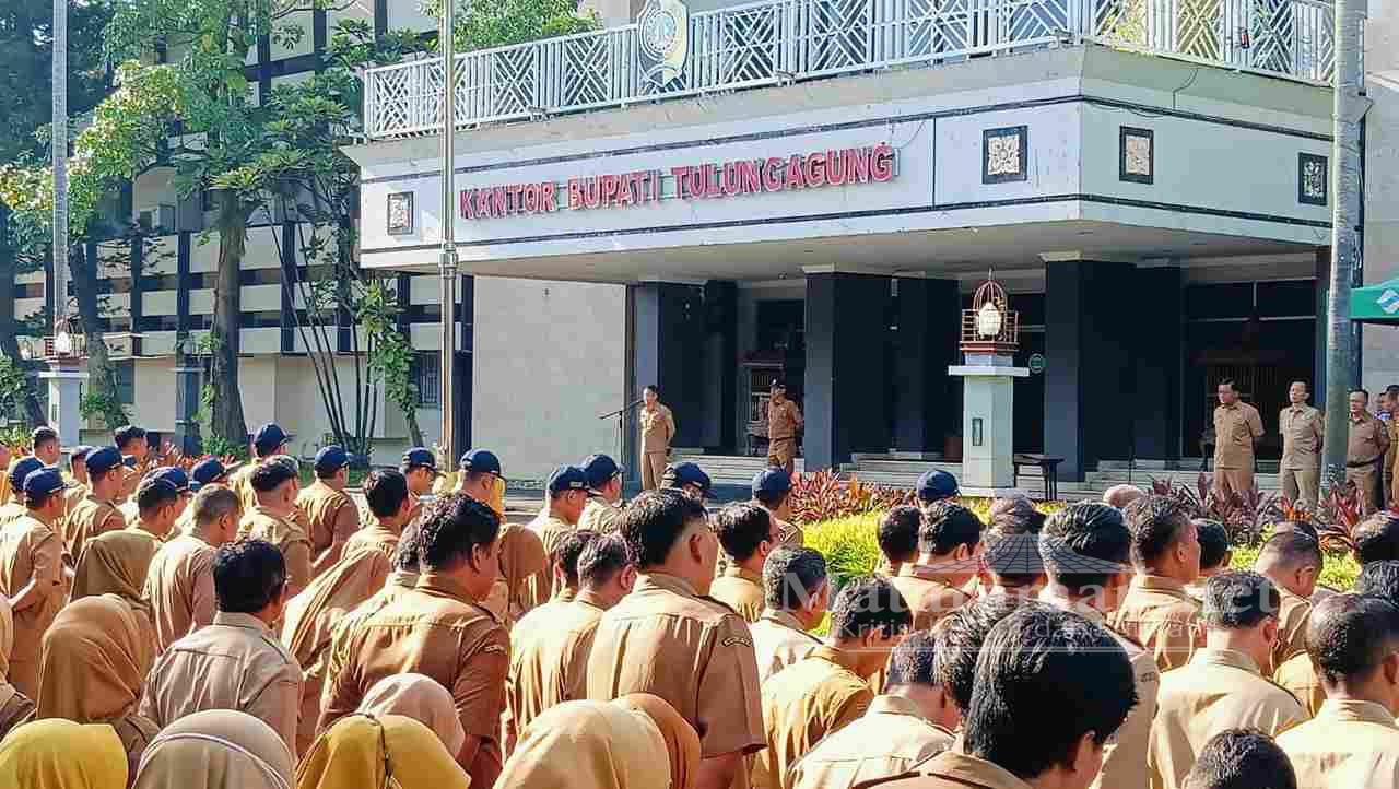 Hal itu dibenarkan oleh Pj Sekretaris Daerah Pemkab Tulungagung, Soeroto usai memimpin apel pagi di halaman Pemkab Tulungagung Senin (13/4/2026). Pihaknya masih menunggu keputusan resmi dari pemerintah pusat siapa pengganti orang nomor satu di Pemkab Tulungagung tersebut.