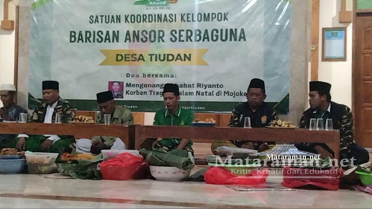 Tulungagung, Mataraman.net – Peristiwa heroik Riyanto, seorang Banser asal Mojokerto yang mengamankan bom hingga ia meninggal pada 2000 silam tercatat dalam memori. GP Ansor Desa Tiudan Kecamatan Gondang Kabupaten Tulungagung dan Satkorkel Banser Tiudan mengenang Riyanto menghelat doa bersama.